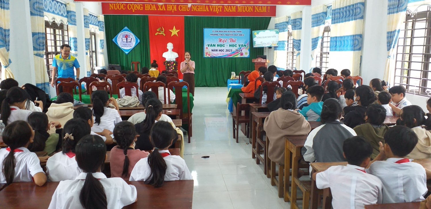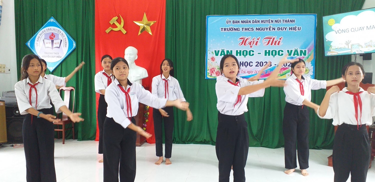 Thực hiện KH 123/KH-THCS.NDH ngày 02/11/2023 về tổ chức Hội thi “Văn học – Học văn” năm học 2023-2024 của trườngTHCS Nguyễn Duy Hiệu. Ngày 14/12/2023 Hội thi “Văn học - Học Văn” đã diễn ra vô cùng sôi động và hấp dẫn.