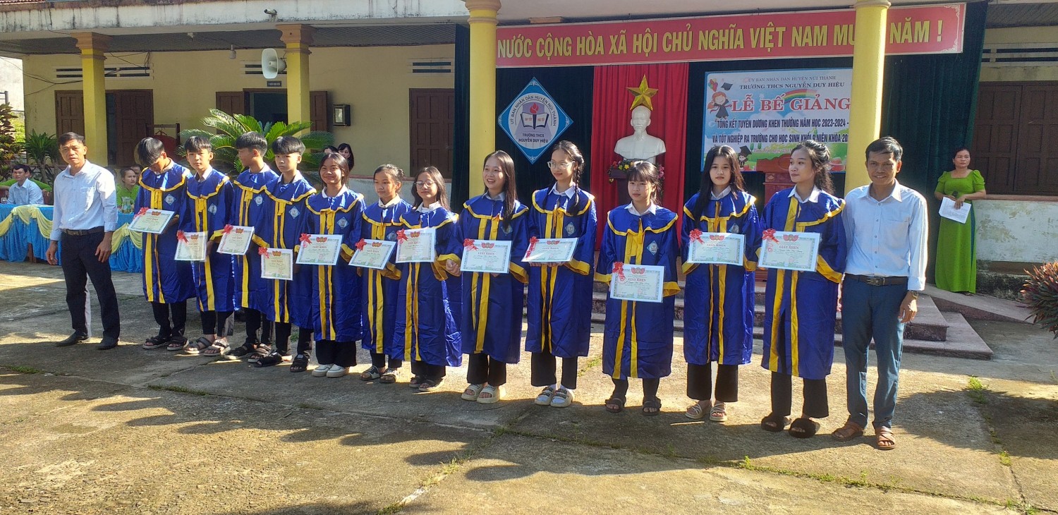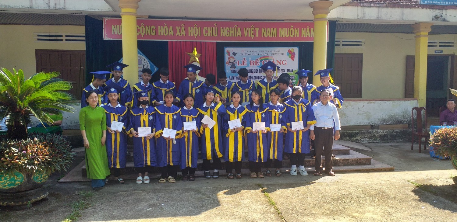 Năm học 2023-2024 trường THCS Nguyễn Duy Hiệu có 58 học sinh khối 9. Trong đó có 08 HS tốt nghiệp loại Giỏi, 24 HS tốt nghiệp loại Khá và 26 HS tốt nghiệp loại trung bình.
